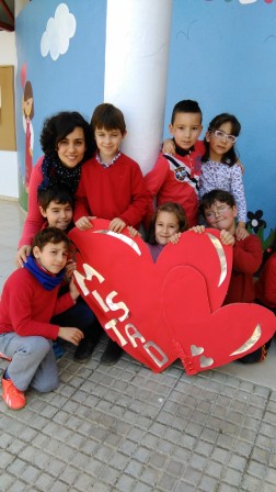 El día 16 de Febrero celebramos «El día de la Amistad» en nuestro colegio enmarcado dentro del Programa «Escuela Espacio de Paz». Es una actividad nueva y alegre, en donde todo el alumnado va vestido con una prenda roja en la parte superior, donde hablamos de AMISTAD, TOLERANCIA, COMPAÑERISMO, PAZ, RESPETO Y AMOR. Durante dos semanas hemos estado haciéndonos unas fotos muy amorosas y simpáticas y se ha montado por parte de la coordinadora un vídeo. Os lo dejamos aquí para que disfrutéis de él y ya os compartiremos todas las fotos realizadas. También, por la tarde, y aprovechando por parte del AMPA que van a compartir unas sopaipas y un chocolate con este motivo para toda la Comunidad Educativa, se recaudará fondos para adquisición de material para el cole.