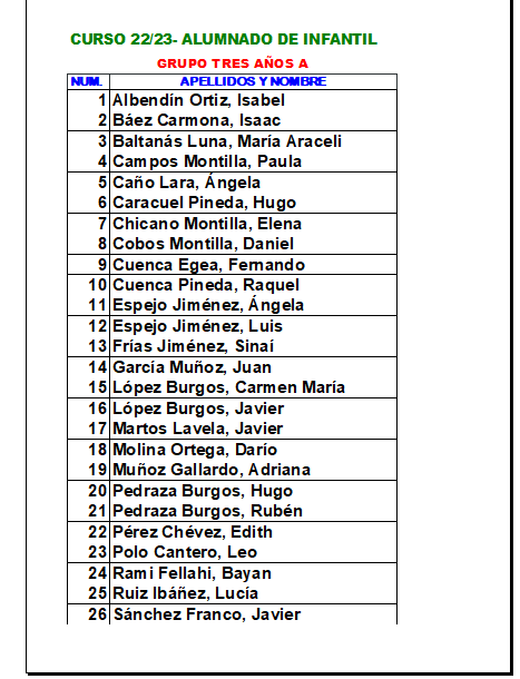 LAS LISTAS DEL ALUMNADO DE 3 AÑOS DE NUESTRO CENTRO ESTÁN PUBLICADAS EN NUESTRO TABLÓN DE ANUNCIOS UBICADO A LA ENTRADA DEL CENTRO.
