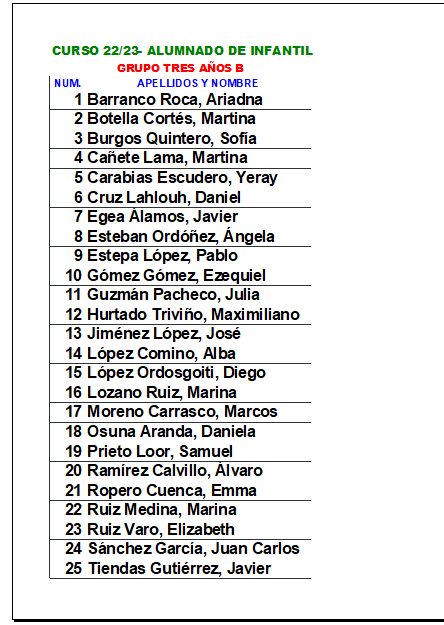 GRUPO DE TRES AÑOS B CURSO 2022-2023