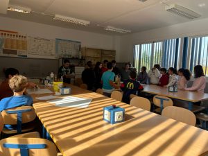 Hemos comenzado con un primer encuentro en el Instituto, donde nuestro alumnado ha conocido, a través de una yimkana de pruebas físicas, tecnológicas y literarias, los distintos lugares y espacios del centro y previamente, hemos desayunado junto al resto de alumnos/as del Instituto y los compañeros/as de Sexto del colegio Antonio Machado.