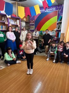 EL EQUIPO AYUDANTE DE LA BIBLIOTECA LO HAN HECHO FENOMENAL. LES HA CONTADO UN CUENTO Y ENSEÑADO LOS BUENOS MODALES Y NORMAS DE PRÉSTAMO. TAMBIÉN LES HA ENSEÑADO LA BIBLIOTECA.