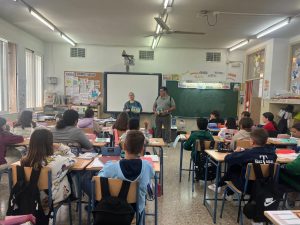 Ha sido la actividad creativa de esta mañana en las aulas de quinto y sexto, para invitarnos a su mesa expositora de la tarde con libros en la zona del Castillo y también para conocer al alumnado de Sexto que está trabajando para el Museo El Prado la poesía y, más concretamente, la poesía con perspectiva de género, poetas andaluzas y representativas y, como no, poetas lucentinas, como Carmen.