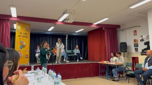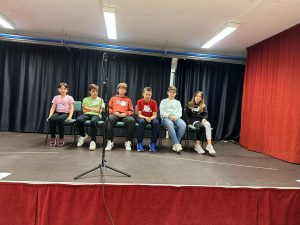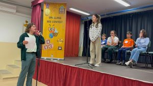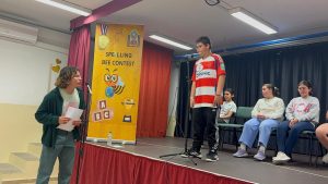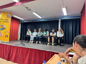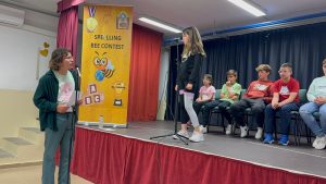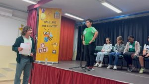 Por supuesto, en días previos, en clase, se había estado preparando el alumnado participante: listado de palabras, pronunciación de las mismas, rondas preliminares… Y así hasta concretar las personas que representarían a cada grupo en la gran final.