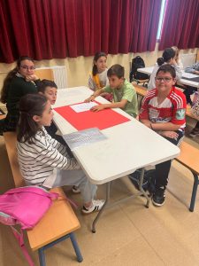 Una vez en el centro, el alumnado se dividió en grupos formado por estudiantes de los distintos colegios. Por turnos fueron deletreando las palabras en inglés que los auxiliares de conversación de los distintos centros iban sacando al azar.