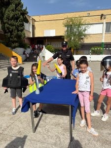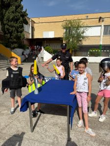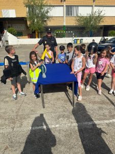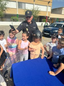 Hemos comenzado la mañana aprendiendo lo que hace la Policía cada día, hemos visualizado los medios con los que cuenta y ha sido una lección ciudadana que ha recibido el alumnado de 2º y 3º de Primaria en el patio del colegio.