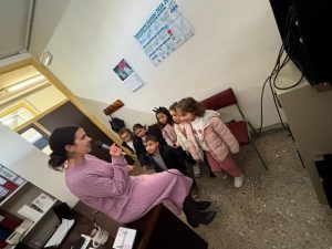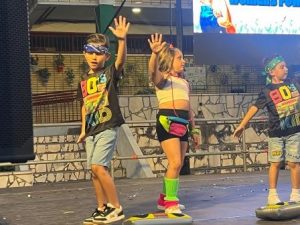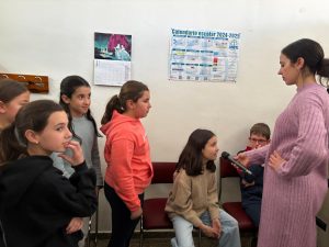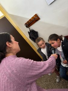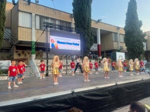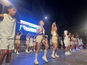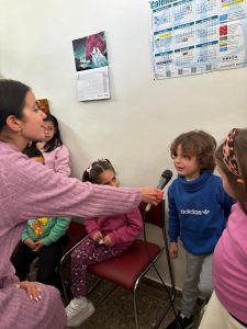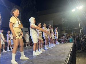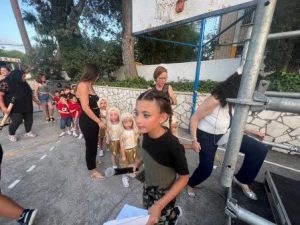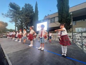 Los más pequeños de 4 años A aguardaban a pie de escenario, nerviosos, era su primera actuación, y serían los encargados de recibir y dar la bienvenida todos con su canción: «Las mujeres ya no lloran» (Shakira)