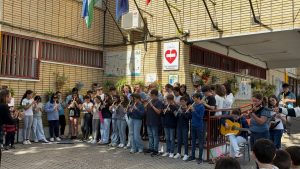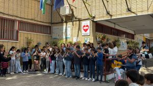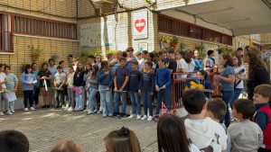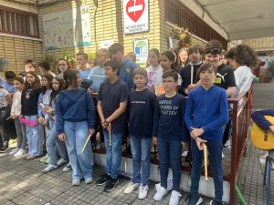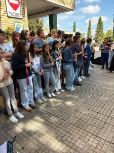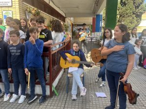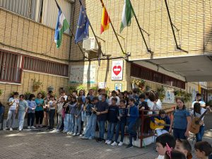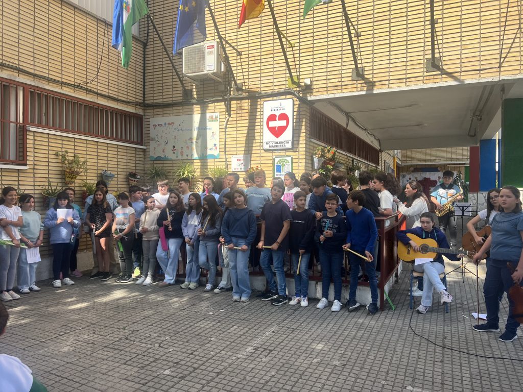 En El Prado, el alumnado de Sexto ha interpretado a flauta, guitarra y violín , el «Himno de la Alegría», que es una obra musical basada en la «Oda a la Alegría» de Friedrich Schiller, musicalizada por Ludwig van Beethoven en su Novena Sinfonía, y se ha convertido en un símbolo de fraternidad y esperanza.