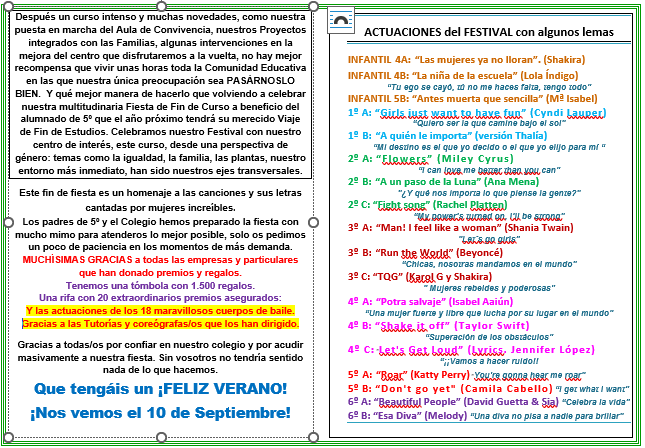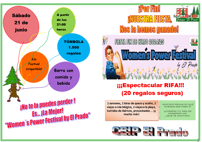 El Programa de la Fiesta Fin de curso 2024/25 estaba a punto de comenzar…la cuenta atrás para nuestro «WOMEN´S POWER FESTIVAL BY EL PRADO!»