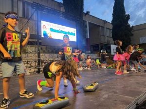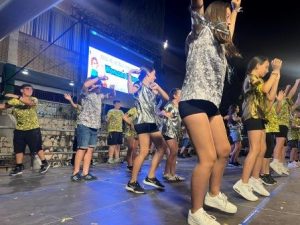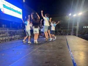 Este año, nuestros padres y madres de Quinto han innovado con un fondo de luz, anunciando a sus patrocinadores/as y dando brillo a nuestras actuaciones.