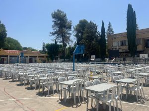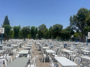 Todo comenzaba el viernes 20 de junio colocando mesas y sillas, acondicionamiento de barras y carteles, todo estaba en marcha… Los padres y madres empezaron con los preparativos…