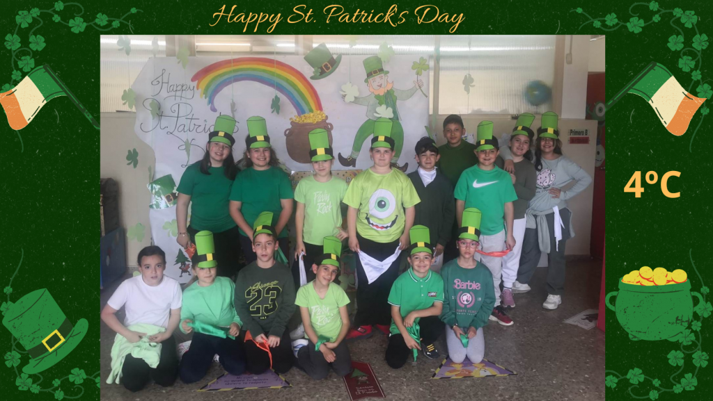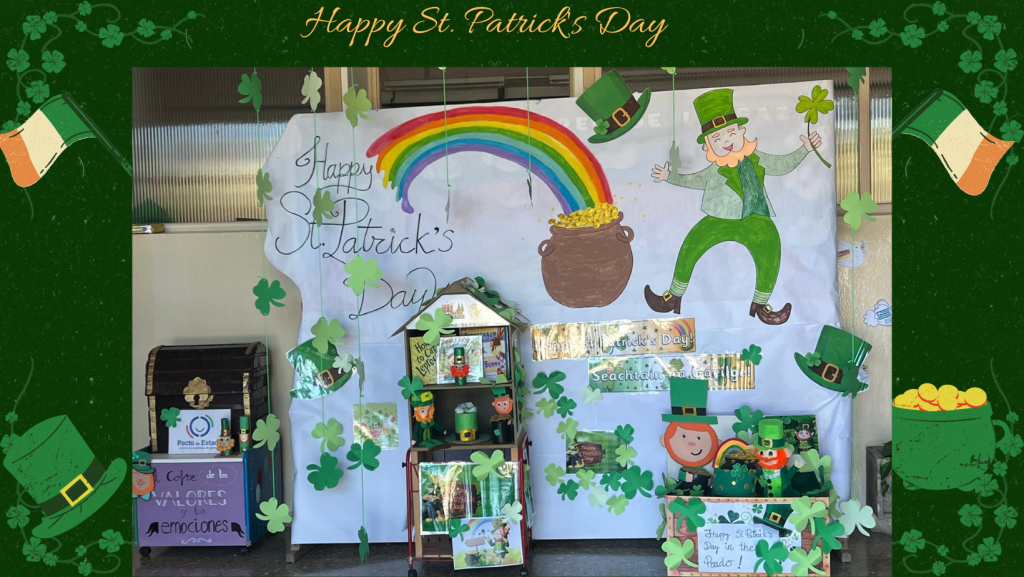 Durante las últimas semanas del 2º trimestre, nuestro centro educativo se ha llenado de color verde, música y mucha ilusión con motivo de la celebración de St. Patrick’s Day. Este proyecto interdisciplinar, desarrollado desde Educación Infantil hasta 6º de Educación Primaria, ha sido impulsado y planificado dentro del Proyecto Bilingüe del centro, trabajando principalmente desde las áreas de Inglés y Música.