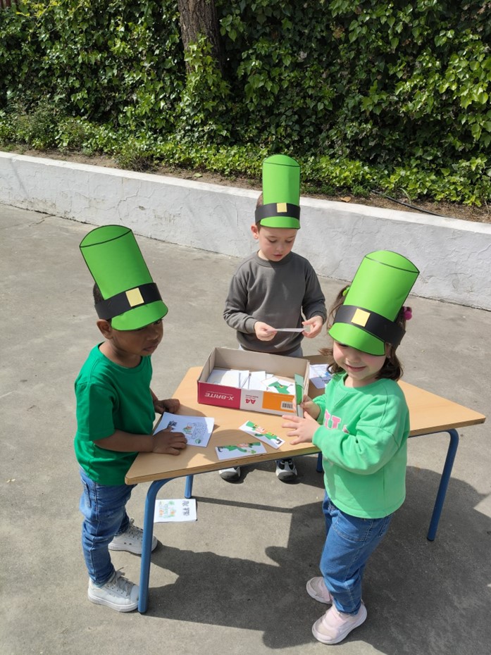 Os dejamos una muestra de la gymkana de Infantil donde el alumnado ha tenido que formar puzles con símbolos típicos de la efeméride, han practicado un trabalenguas, ha practicado el conteo y ha resuelto una adivinanza además de crearse un gorro de leprechaun.