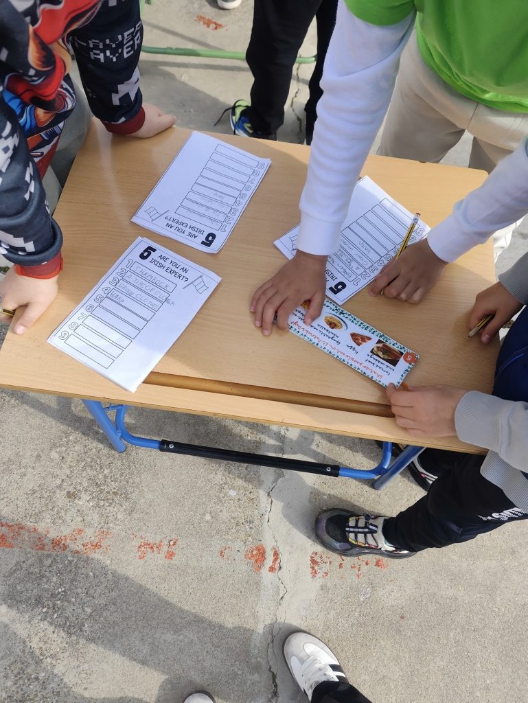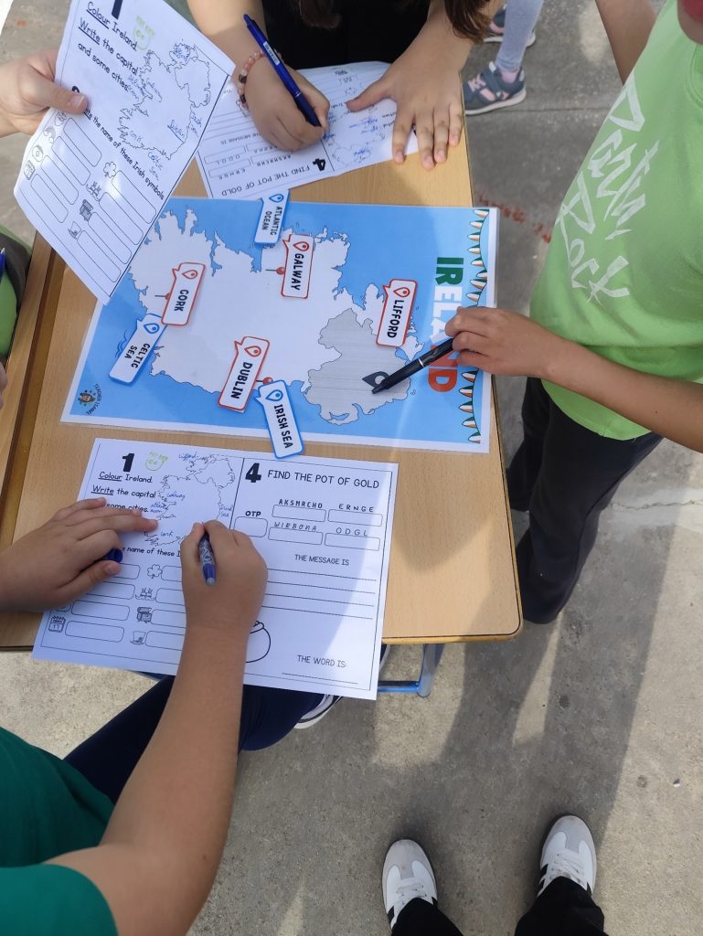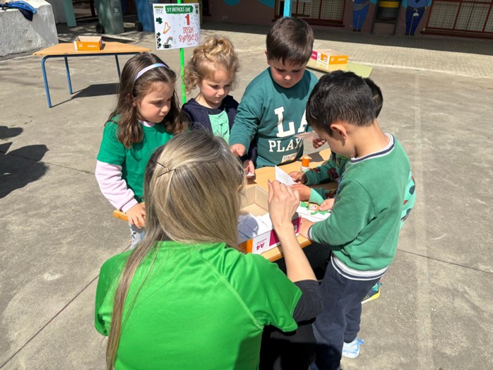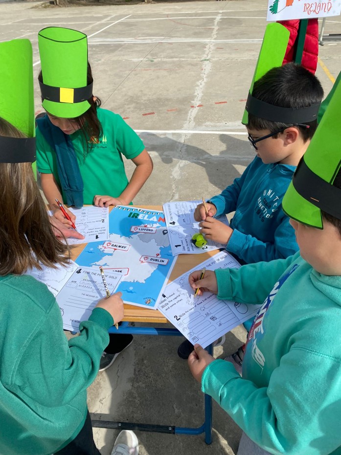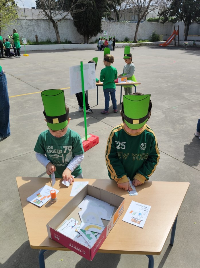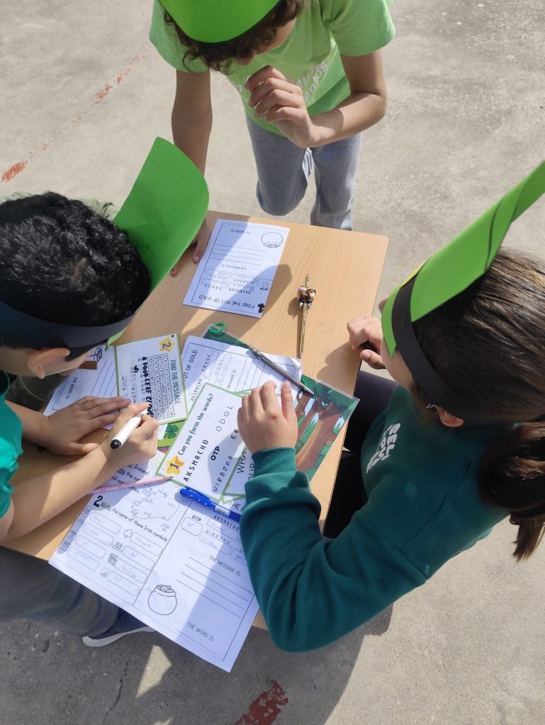 Una de las actividades más esperadas ha sido la gymkana temática, en la que los distintos grupos han superado divertidas pruebas relacionadas con Irlanda: preguntas culturales, retos sobre geografía y curiosidades sobre esta festividad tan especial. El trabajo en equipo, la cooperación y el uso del inglés han sido fundamentales para completar cada desafío. La gymkana ha estado adaptada para Educación Infantil y Educación Primaria, favoreciendo así la participación y enriquecimiento del alumnado de ambas etapas.
