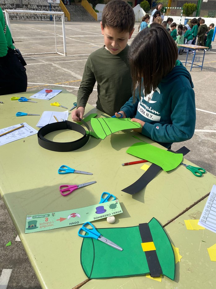 3. El alumnado ha elaborado su propio gorro de Leprechaun, uno de los personajes más emblemáticos de la tradición irlandesa.