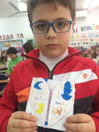 Con motivo de la celebración del día de San Valentín, hoy, martes 14 de febrero, todos los alumnos/as del colegio han regalado una tarjeta de felicitación a un compañero/a de clase.