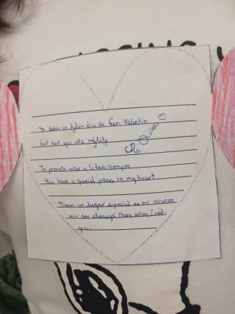 En Infantil de 4 años la tarjeta ha incluido la frase «Happy Valentine’s Day» (con letra caligráfica punteada, para repasarla) además del destinatario.