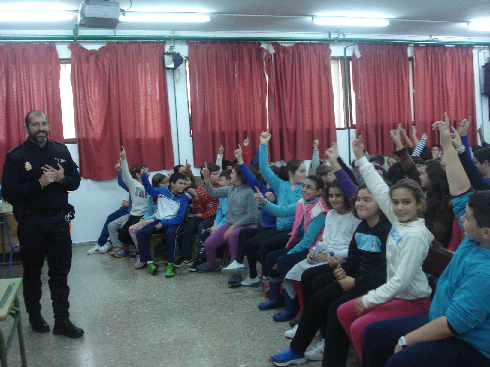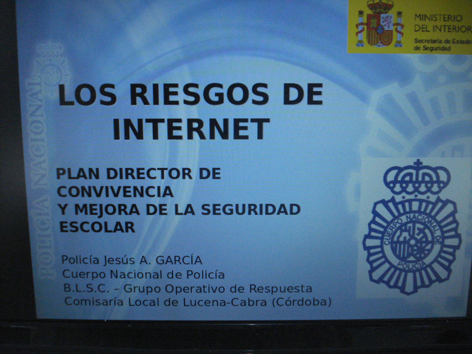 Durante los días 27 y 28 de noviembre los alumnos y alumnas de 5º y 6º de Primaria de nuestro Centro han recibido unas charlas de Policías Nacionales que se han trasladado a nuestro cole pertenecientes a la Comisaría de Cabra-Lucena. El primer día trató sobre los Riesgos de Internet y el mal uso de los móviles e internet por parte de los menores.