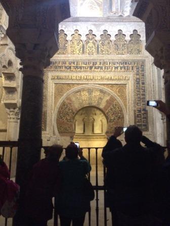 Interior de la Mezquita. El Mihrab y detalle de la columna arañada por un esclavo.