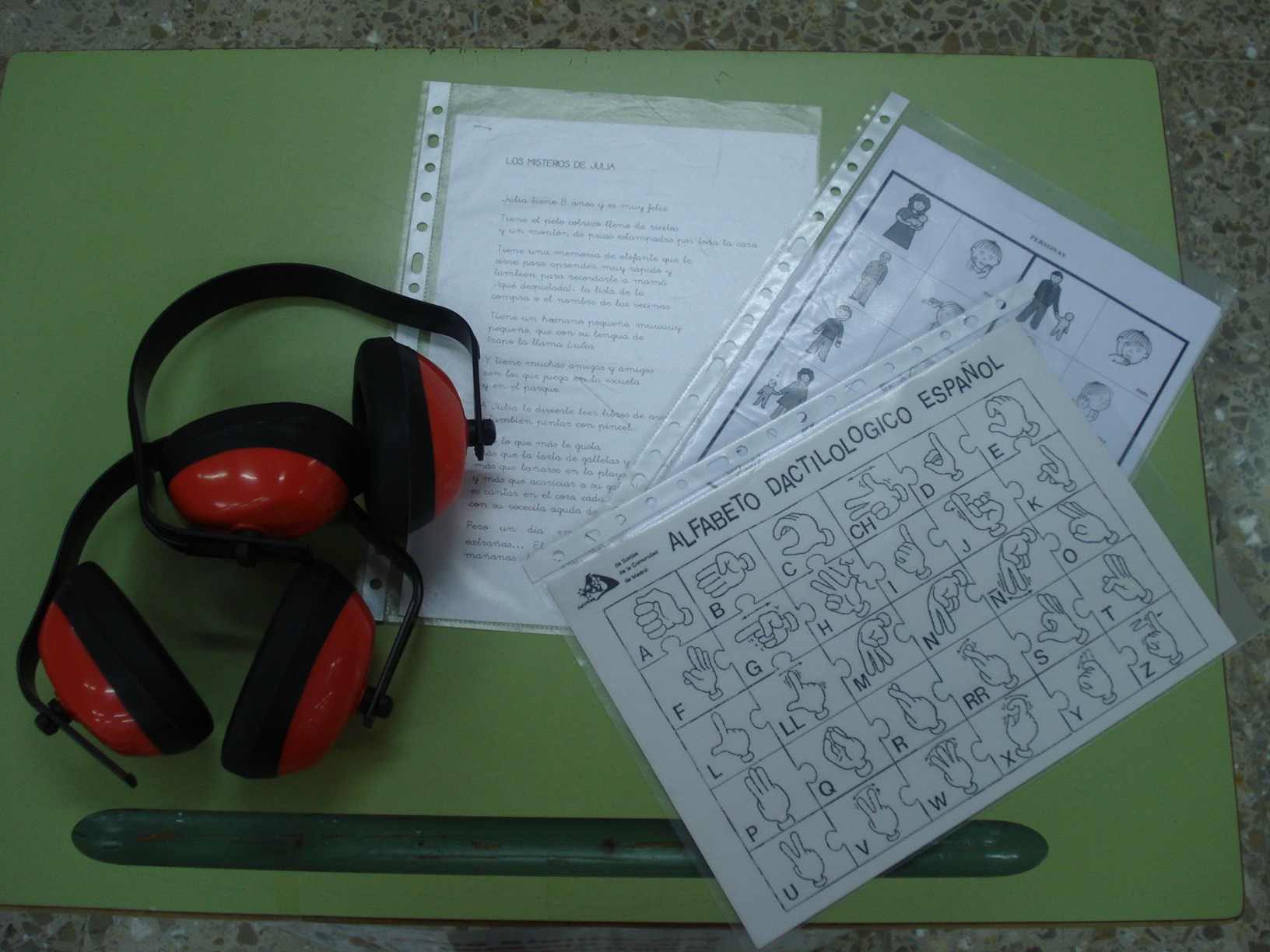 1) Intentar entender las frases que leía un compañero o compañera teniendo los oídos tapados, para sentir igual que una persona con hipoacusia, a lo que también nos ha ayudado el cuento «El misterio de Julia», quien comienza a tener problemas de audición.