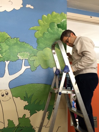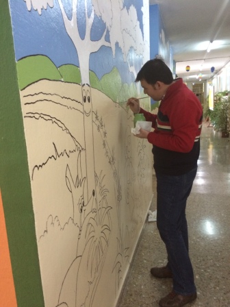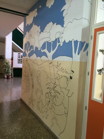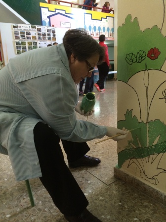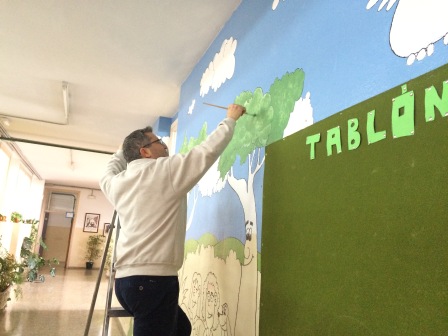 Desde finales del año pasado y, dentro del Programa de ECOESCUELA y junto al Subprograma de Embellecimiento de la Escuela incluido en El Proyecto Intercentros o Escuela «Espacio de Paz», se comenzó a pintar una de las paredes del centro donde se encuentra ubicado el Panel de Ecoescuela. Os vamos dejando la evolución de la decoración que inició y sigue pintando nuestro compañero Antonio Palomino y Mª Antonia Cabello (ya jubilados) y Ángel Valle (coordinador del Proyecto Huerto Escolar).