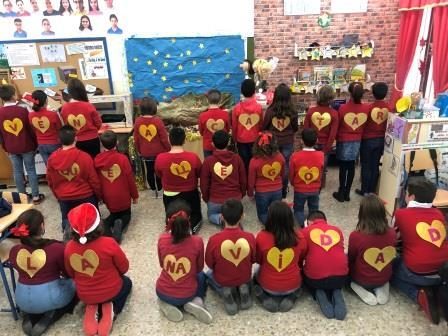 Los alumnos/as de Infantil de 3 años A y B interpretaron un villancico titulado: «Los Reyes Magos» de Tatiana; el alumnado de 4 años: «La Virgen gitana» y el alumnado de 5 años A, el villancico se transformó en teatro e interpretaron: «La Leyenda del árbol de Navidad».