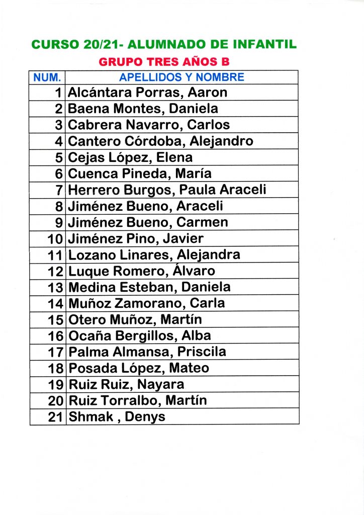GRUPO DE TRES AÑOS B CURSO 2020-2021