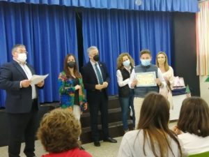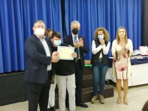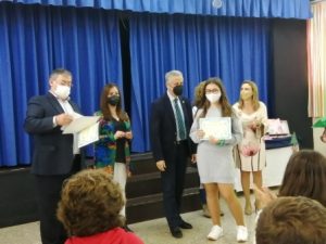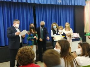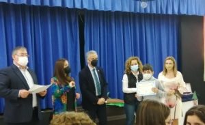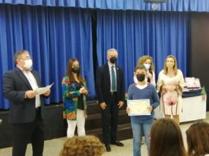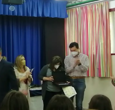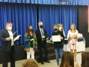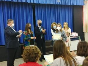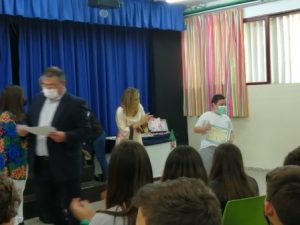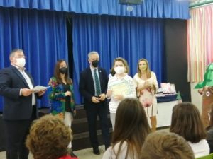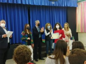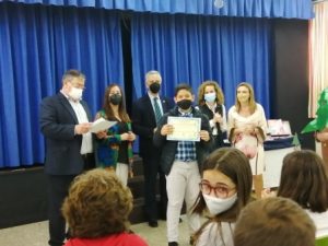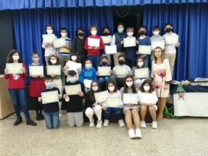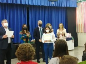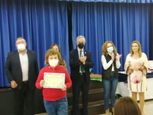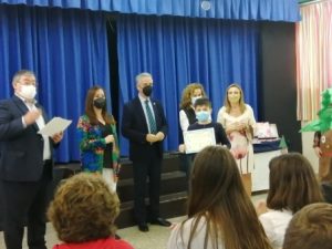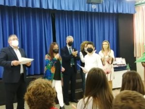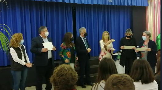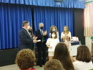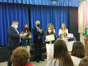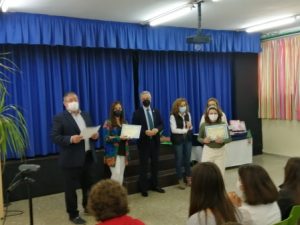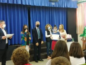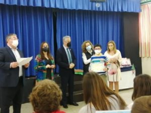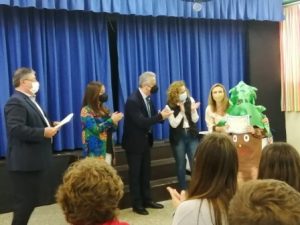 Tras esta visita se hizo entrega, en el salón de actos, del premio mencionado de la Biblioteca y del premio Lector «Cien maneras de terminar una historia» (que ha sido para María Recio Gutiérrez, de 5º de Primaria). También se hizo entrega al equipo de ayudantes de la Biblioteca de un diploma en reconocimiento a su labor no sólo en los préstamos de libros y ayuda diaria de colocación y otras labores propias, sino en la ayuda prestada en esta remodelación de estos meses. Y, por último, se entregaron diplomas y detalle a madres y padres que han colaborado y siguen colaborando en este proceso.