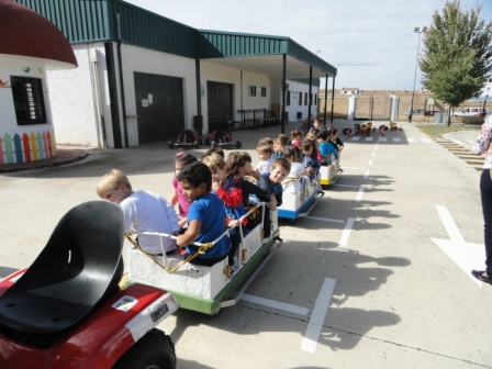 Todos los pequeños de Infantil de 4 años A y B pasaron una jornada educativa y divertida en el Parque Infantil de Tráfico (PIT) para aprender las normas básicas de circulación, desde el punto de vista del peatón como del conductor, educación vial, y, pudieron recibir una charla por parte del técnico del PIT, montaron en vehículos de locomoción básicos y se lo pasaron fenomenal…¡Y montaron en el trenecito también!