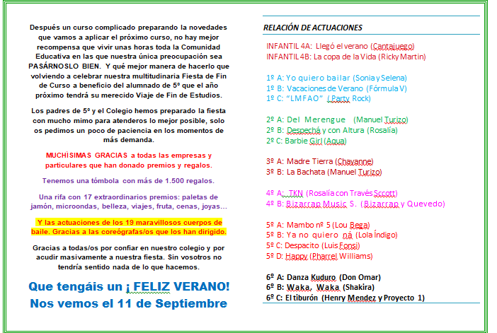 El Programa de la Fiesta Fin de curso 2022/23 estaba a punto de comenzar…la cuenta atrás para nuestro «Summer Prado Mix»…
