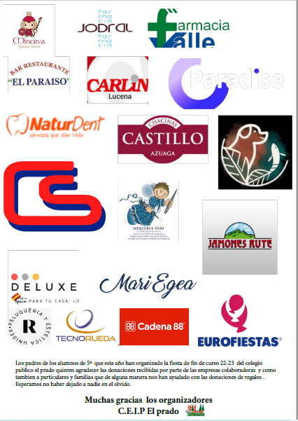 MUCHÍSIMAS GRACIAS a todas las empresas y particulares que han donado premios y regalos.