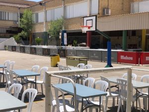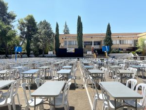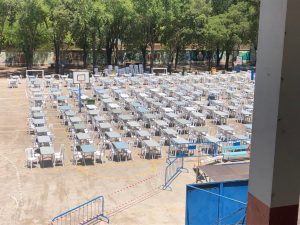 Todo comenzaba el viernes 23 de junio colocando mesas y sillas, acondicionamiento de barras y cartelerías, todo estaba en marcha… Los padres y madres empezaron con los preparativos…