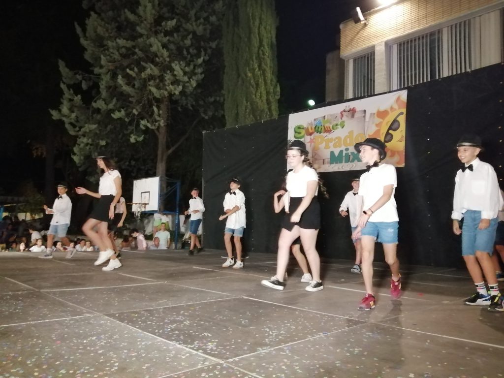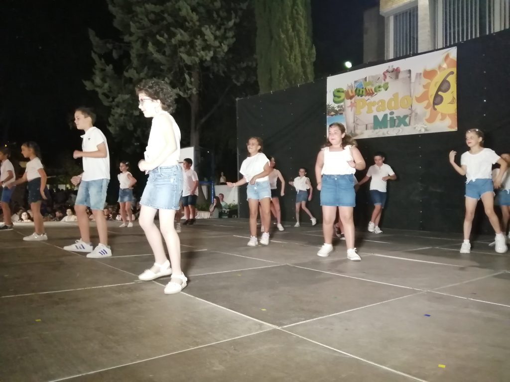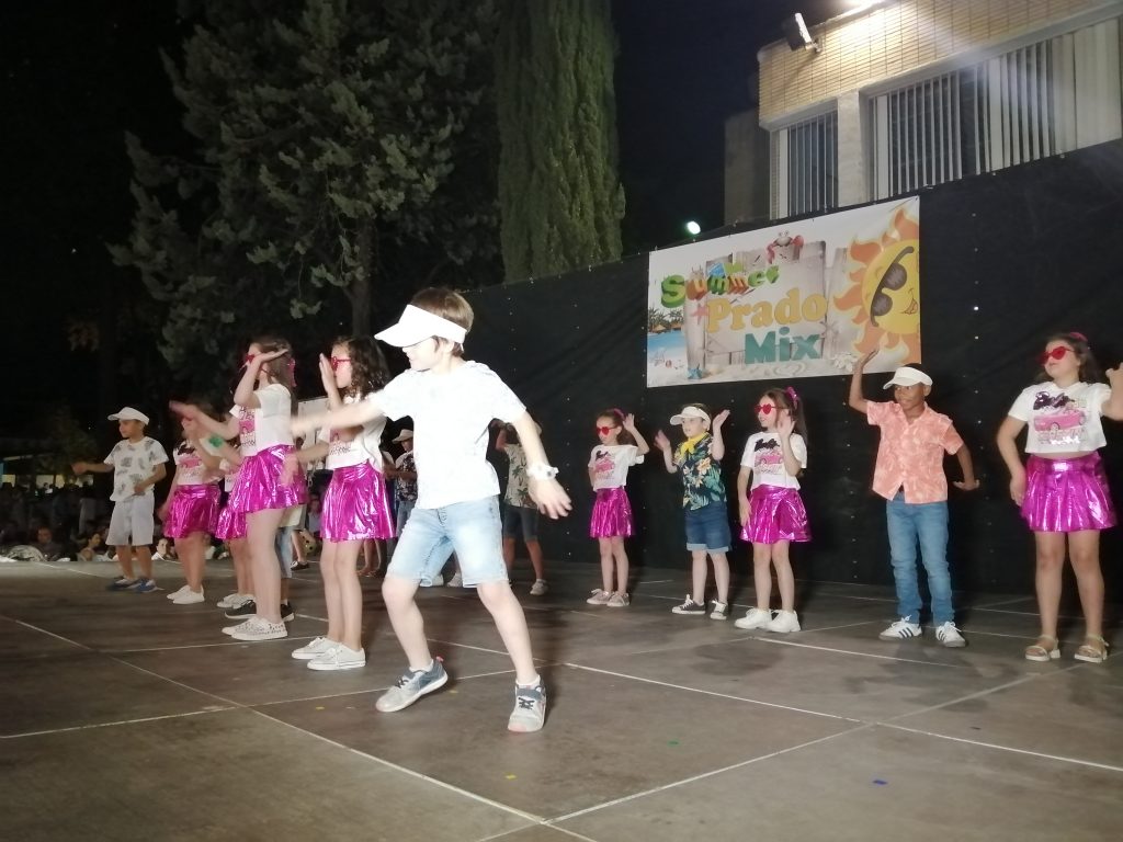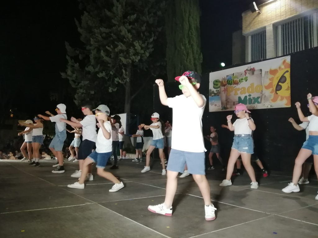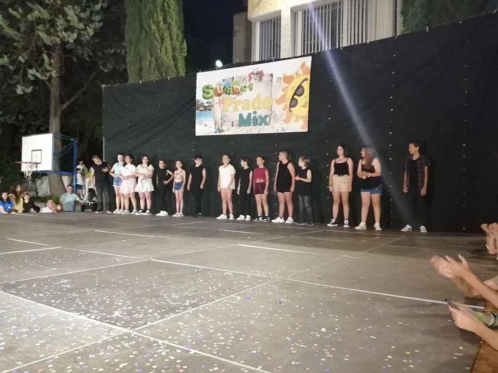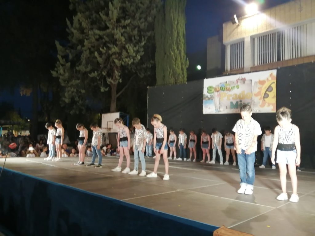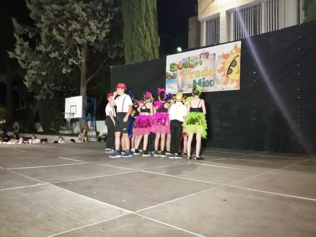 Y, para finalizar el curso, celebramos nuestra Fiesta de Fin de Curso que la realizamos, de nuevo, con una única temática para todos los cursos. Este año ha sido las canciones del verano; «Summer Prado Mix» el hilo conductor de toda la velada. Canciones que han pasado por este Festival y han sido muy conocidas, cantadas y bailadas por todos a lo largo de los veranos. Preciosos disfraces, canciones, decoración…..Nuestro «SUMMER PRADO MIX» especial y maravilloso. Todos disfrutaron muchísimo: desde los bailarines más pequeños a los más grandes, padres y madres que se emocionaron viéndolos en escena, hubo tómbola, rifas, una barra magnífica comida y bebidas organizado por los padres y madres del alumnado de Quinto (que el próximo curso van de viaje final de etapa): hubo mucho color y nuestro Prado brilló con la luz de una estrella de verano.