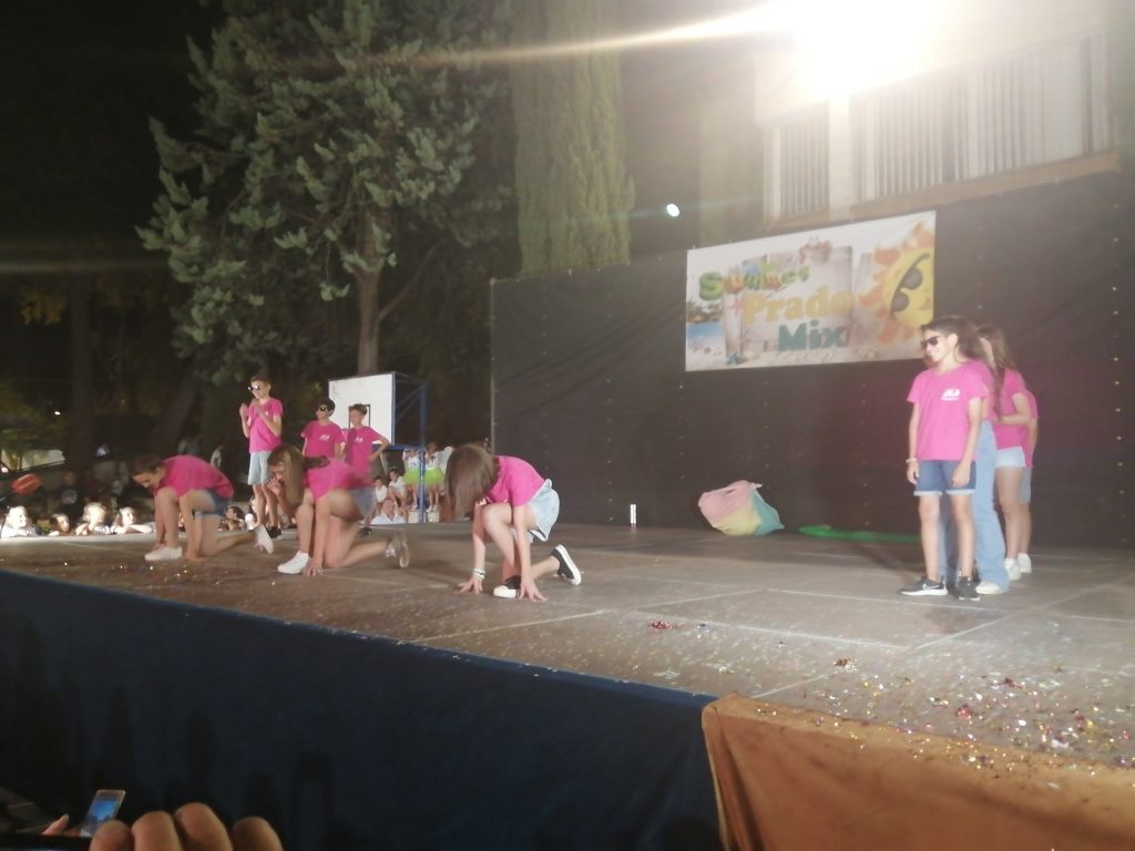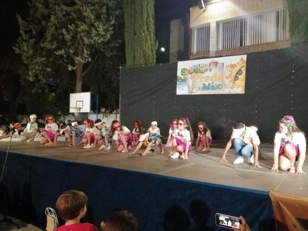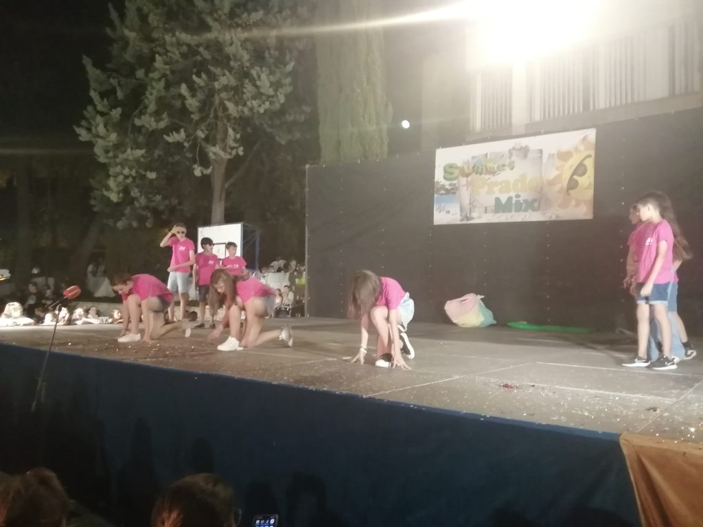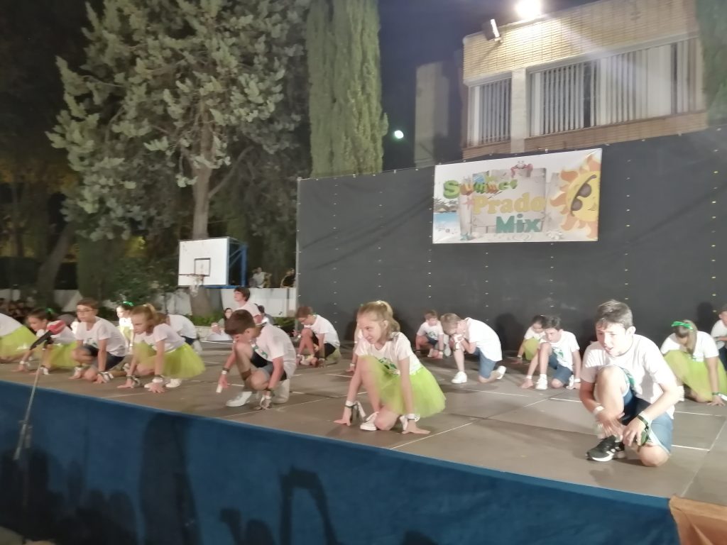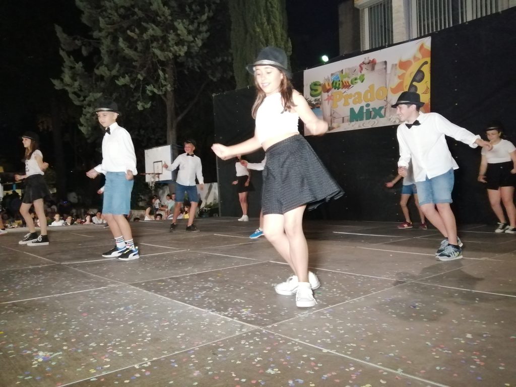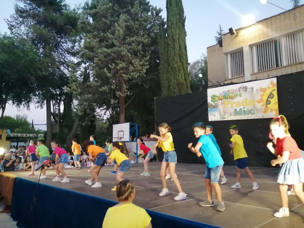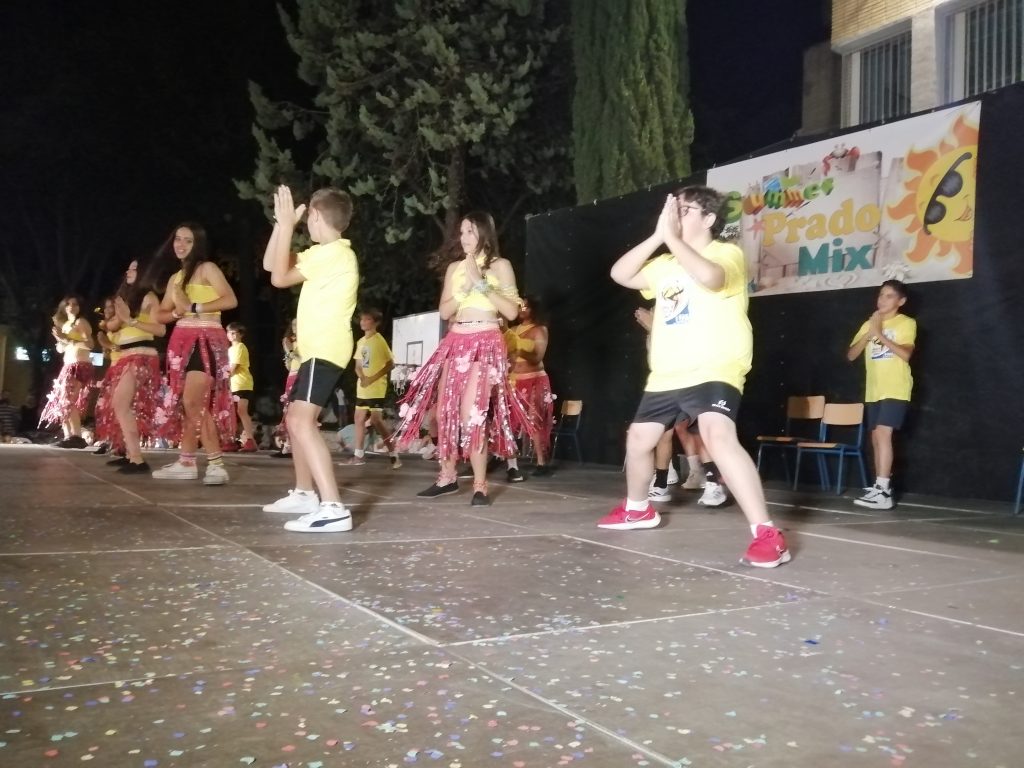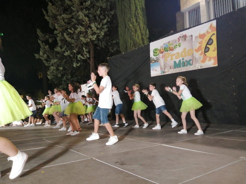 Y, para finalizar el curso, celebramos nuestra Fiesta de Fin de Curso que la realizamos, de nuevo, con una única temática para todos los cursos. Este año ha sido las canciones del verano; «Summer Prado Mix» el hilo conductor de toda la velada. Canciones que han pasado por este Festival y han sido muy conocidas, cantadas y bailadas por todos a lo largo de los veranos. Preciosos disfraces, canciones, decoración…..Nuestro «SUMMER PRADO MIX» especial y maravilloso. Todos disfrutaron muchísimo: desde los bailarines más pequeños a los más grandes, padres y madres que se emocionaron viéndolos en escena, hubo tómbola, rifas, una barra magnífica comida y bebidas organizado por los padres y madres del alumnado de Quinto (que el próximo curso van de viaje final de etapa): hubo mucho color y nuestro Prado brilló con la luz de una estrella de verano.
