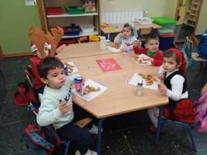 Comenzó la mañana con ricos desayunos en clase que las familias habían traído y compartido con nosotr@s, mientras llegaban nuestros Reyes Magos al Prado. Jugamos al Amig@ Invisible, cantamos en clase alegres villancicos, hicimos balance de nuestro trabajo en clase y fue todo diferente y repleto de la emoción del último día de este trimestre en El Prado.