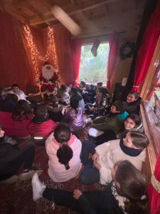 El alumnado vive la asombrosa experiencia de VISITAR A PAPÁ NOEL en su cabaña del Bosque de l´Aljara, recorriendo el sendero del bosque de l´Aljara que les lleva a ese mágico lugar.