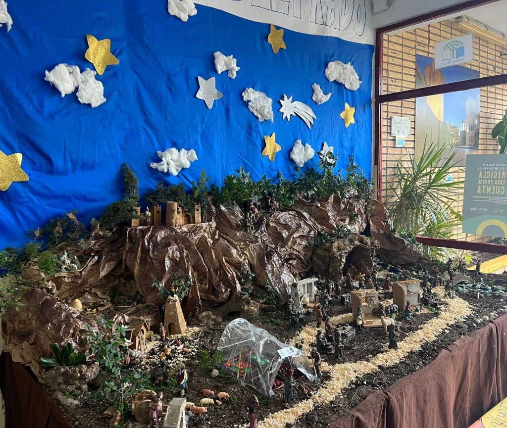 3. (12-12-2022). Nuestro colegio se viste de Navidad : Y nuestro Belén y Chimenea Lectora» iluminaron en Navidad nuestros libros y nuestra entrada en El Prado»