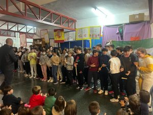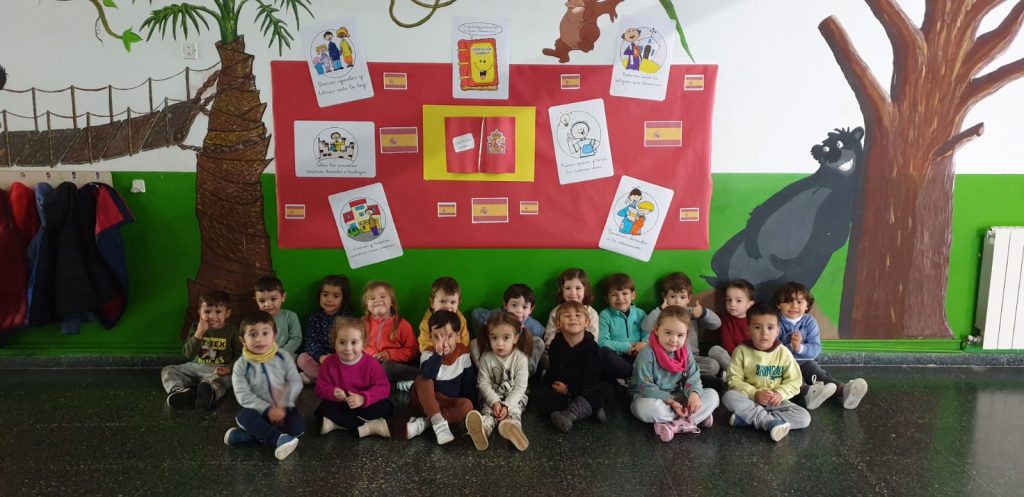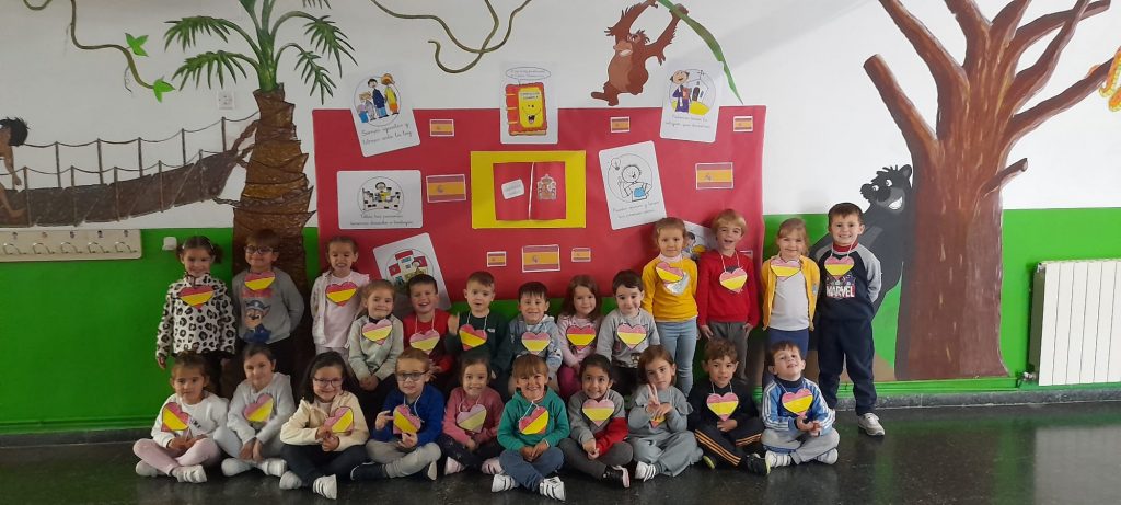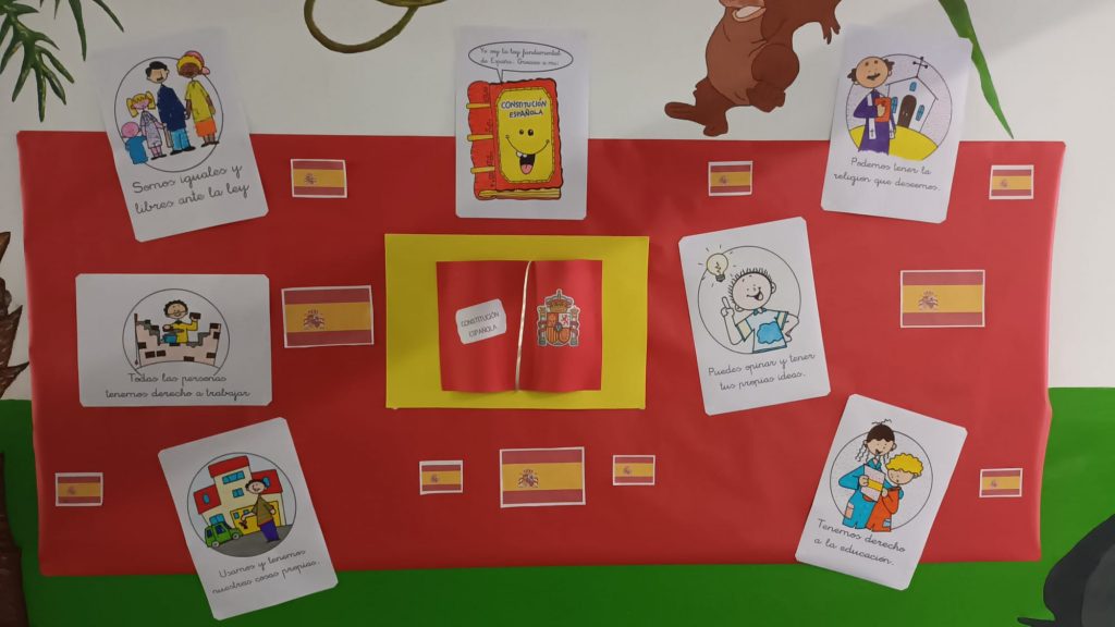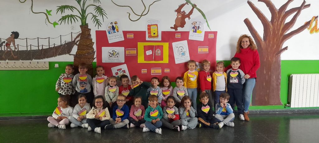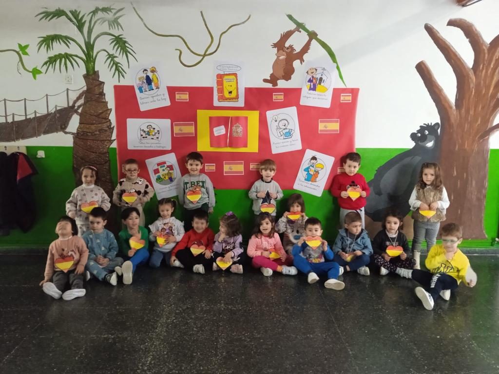 Finalmente, el lunes, día 4, debido a la lluvia, el alumnado de Quinto ha llevado los Símbolos a los distintos espacios donde el alumnado de Sexto ha interpretado el Himno de España a flauta, coordinado por Fernando Chicano, para conmemorar el 45 Aniversario de nuestra Carta Magna, en el Salón Infantil y en los espacios comunes de los distintos ciclos de Primaria.