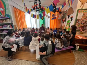 Se trabajó desde el aula también los aspectos lingüísticos: contar el cuento, aprender las poesías, escribir en el «Cuaderno del Escrit@r» la historia del huevo de Pascua, etc.
