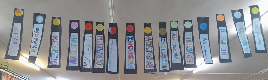 Hemos estado acompañando en su aventura a distintos personajes con capacidades diversas que nos hecho conocerlas bien y como colofón, nuestro encuentro con la escritora delante de la Casa por la Diversidad, bajo la cortina de las luces de VALORES que hemos trabajado en el aula en todo el centro. Y nuestra nave espacial y especial que ha surcado el espacio estas semanas en El Prado, buscando la inclusión, la diversidad, lo mejor de cada uno y una para estar preparad@s para una sociedad donde prime la igualdad de oportunidades y tiene que partir desde la educación de nuestros pequeñ@s.