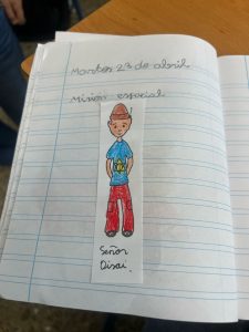 Presentación de los personajes y se cuenta el cuento en la pizarra digital. En 3º se ha leído en círculo, se ha compartido lo que más me ha gustado y lo que menos en forma de lluvia de ideas en voz alta. Y en 4º se han inventado otras capacidades con tarjetas modelo en pequeño grupo.