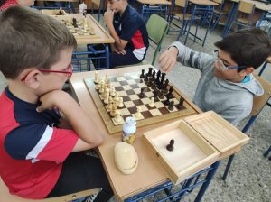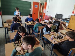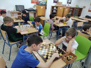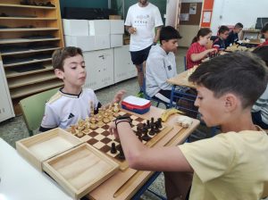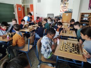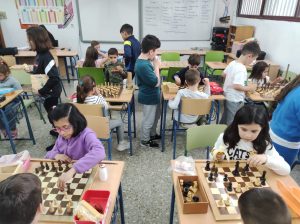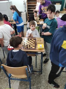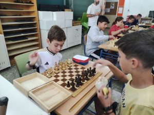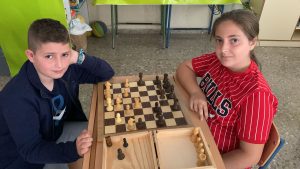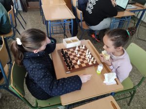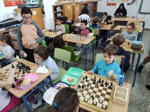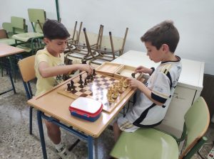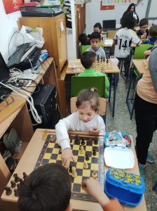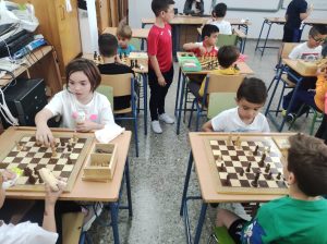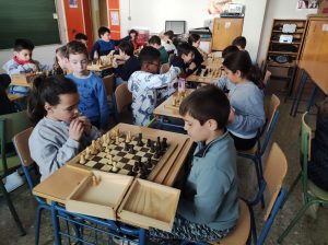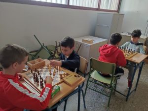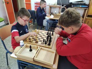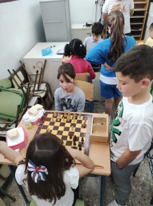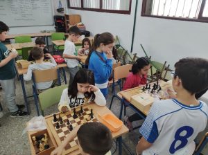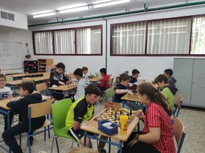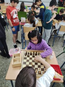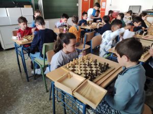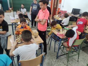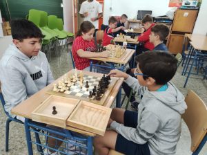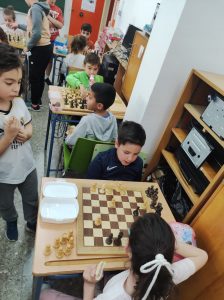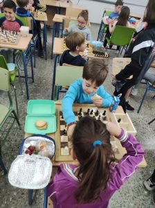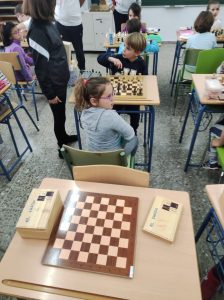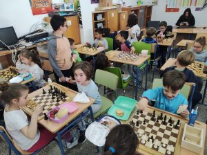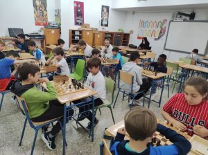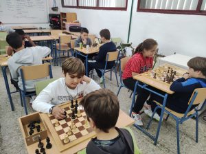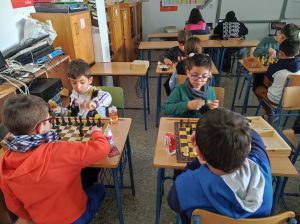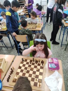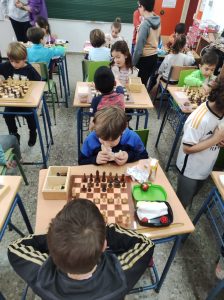 En este mes de abril se han celebrado las primeras partidas oficiales con el alumnado de primero, segundo y tercero. Ha sido una experiencia entrañable: poder visualizar como el alumnado, desde pequeñ@, disfruta con este juego y quiere seguir aprendiendo de la mano de los más mayores que nos han ayudado durante todas las partidas.