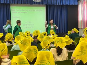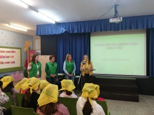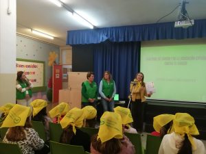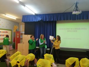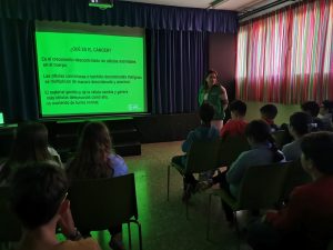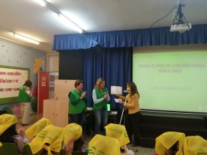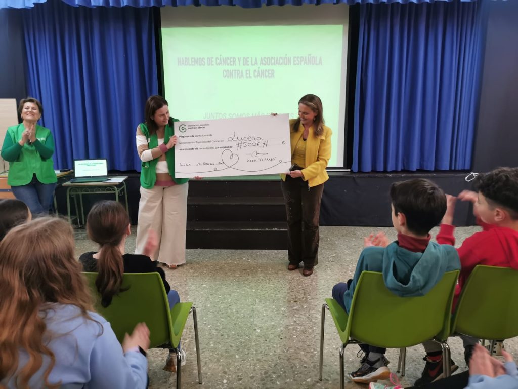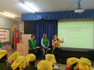 Nuestro colegio, dentro del marco del Plan de Charlas y Formación de Salud a nuestro alumnado y Familias, hemos integrado esta efemérides en nuestra aula y en nuestro centro, a través de una charla por parte de voluntarias de la Asociación del Cáncer de Lucena: Lorena, Araceli (su Presidenta) y M. Carmen (fundadora de la Junta Local) han explicado con un lenguaje sencillo y de manera extraordinaria qué conlleva esta enfermedad, cómo se ayuda desde la Asociación y muchos datos de interés que han podido recibir nuestro alumnado de 4º, 5º y 6º de Primaria. Hoy han sido muy felices compartiendo este momento.