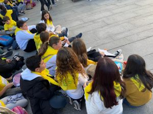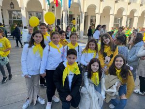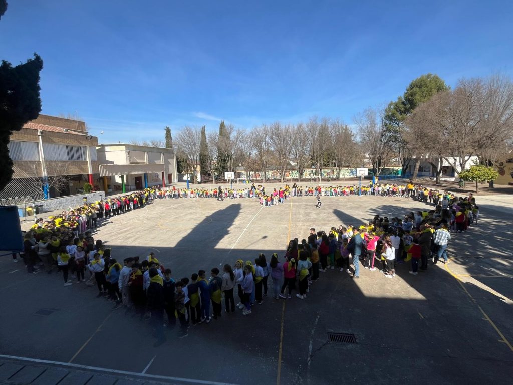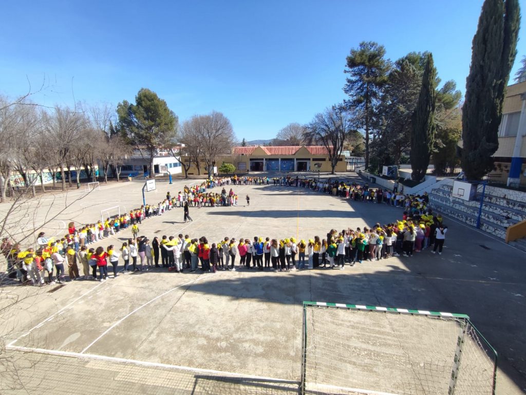 Y desde el centro, como colofón, en el Día de la AMISTAD y el ABRAZO, hemos formado un gran corazón amarillo