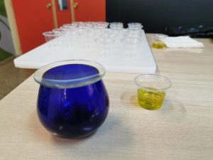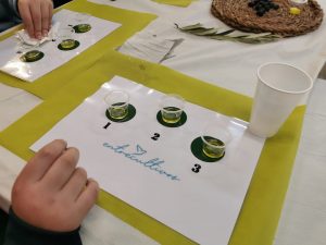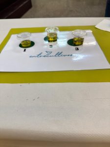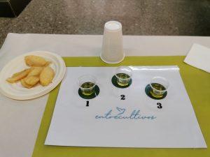 2.- CATA DE ACEITE: Donde cada alumno ha podido valorar 3 aceites: 2 Aceites de Oliva Virgen Extra y 1 Aceite de Oliva. La finalidad de la cata es conocer las características del aceite, su valor y su clasificación.