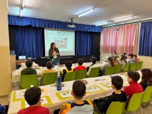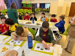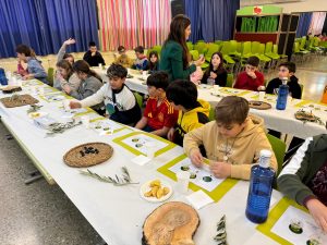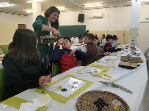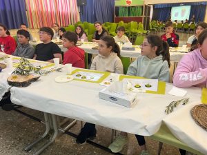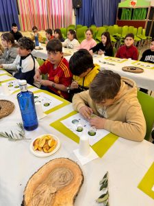 1º CONOCIMIENTO DEL OLIVAR: Para ello se ha visualizado nuestro olivo «Matusalén», han conocido con fórmulas matemáticas y se ha podido saber su edad. Así como han visto las partes del olivo, visualizado diferente hojas de variedades y lo más importante han conocido nuestra cultura, la influencia del olivar en Lucena.