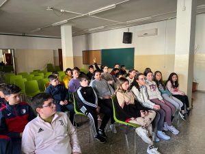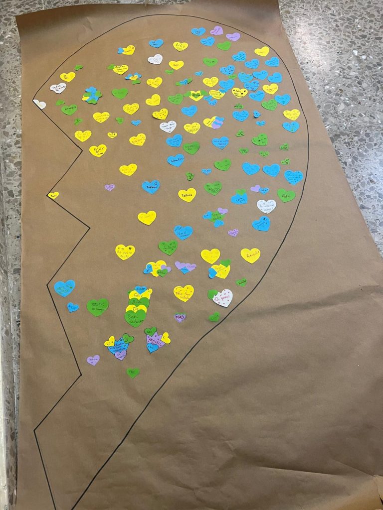 Esta vez, incluido en las actuaciones acordadas en el Plan de Tránsito entre nuestra etapa y la de ESO, ha sido que el equipo de jefatura de estudios del IES «Miguel de Cervantes» se ha trasladado a nuestro salón de actos para hablarnos de actividades, dudas de convivencia y realizar puzzles y una actividad relacionada con el día de hoy: una mitad de corazón hecha de corazoncitos con palabras y deseos de colores y que se unirá al que realice el alumnado del otro centro adscrito (Antonio Machado) y que estará en el Instituto colocado para recibirlos con amor el próximo curso.