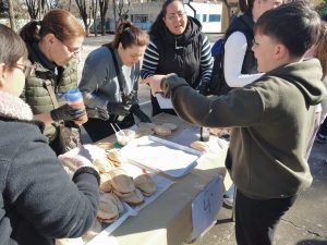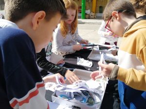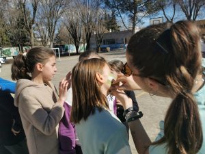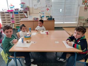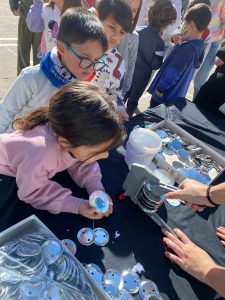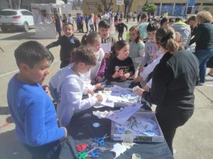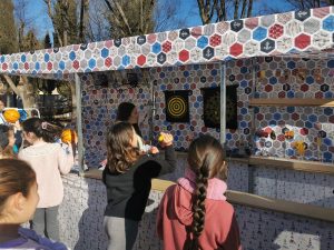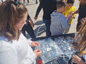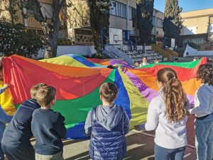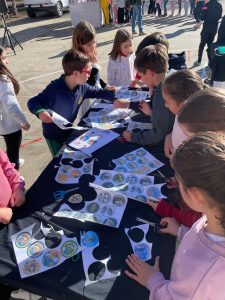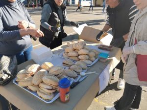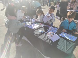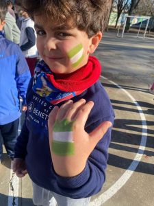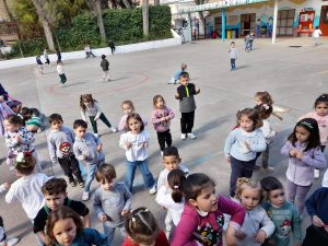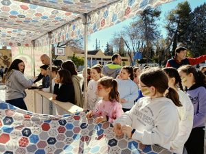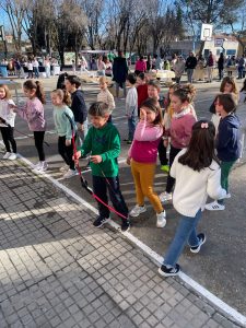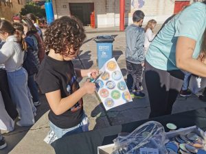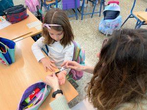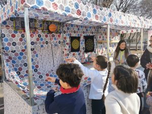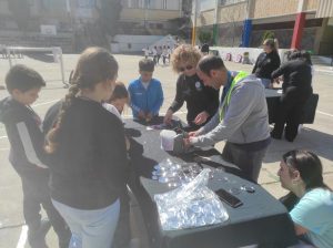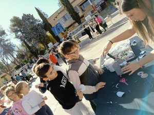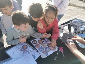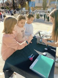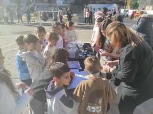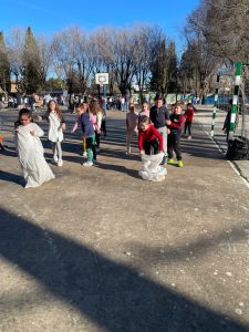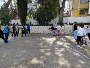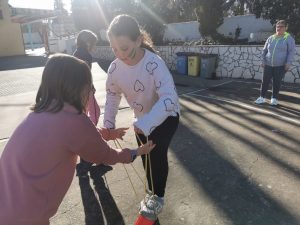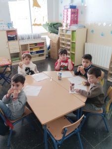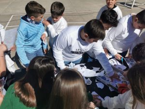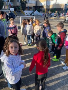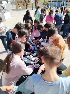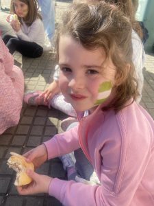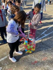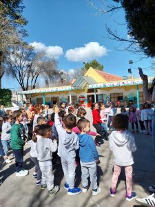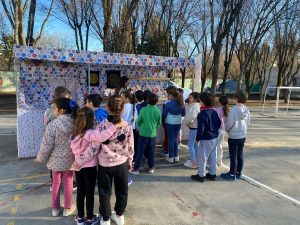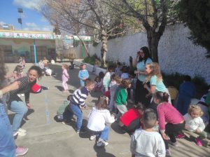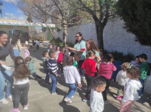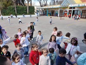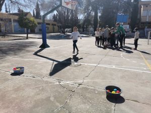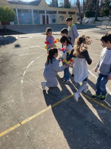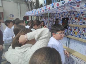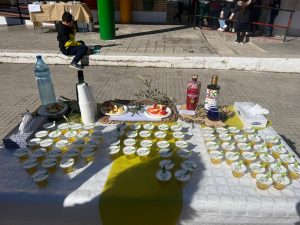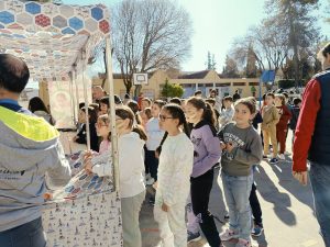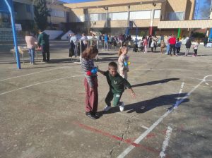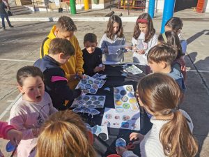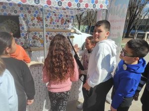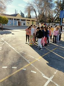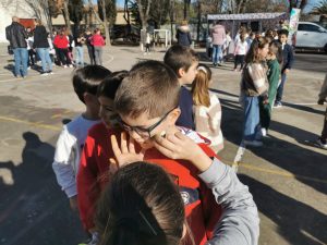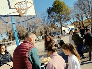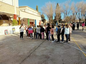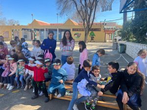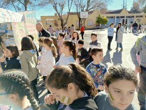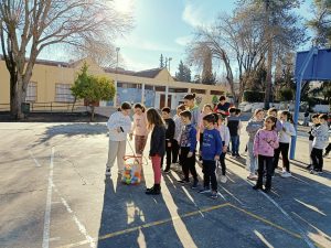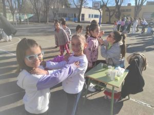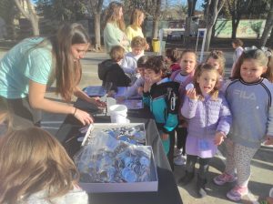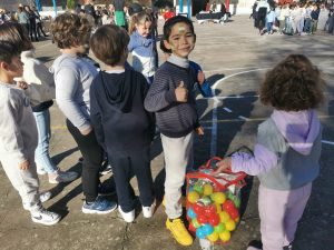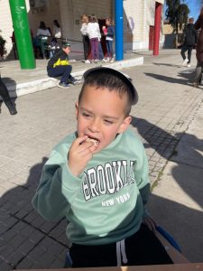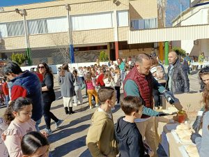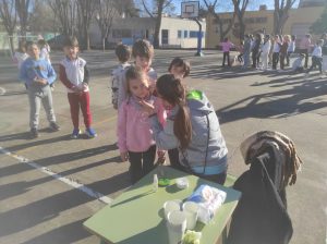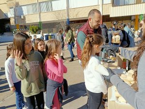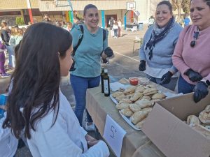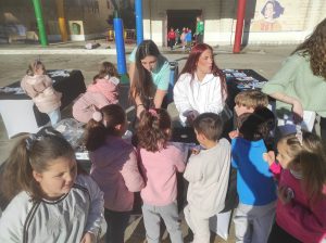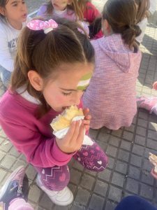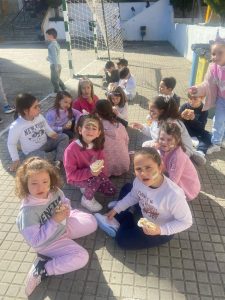 Con la colaboración de madres y padres del colegio, todas las mesas quedan dispuestas a las 10:45 de la mañana, en los patios de Primaria y en Infantil para los cursos más pequeñ@s que lo han degustado en sus aulas.
