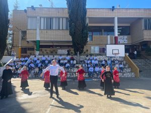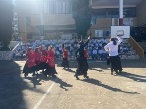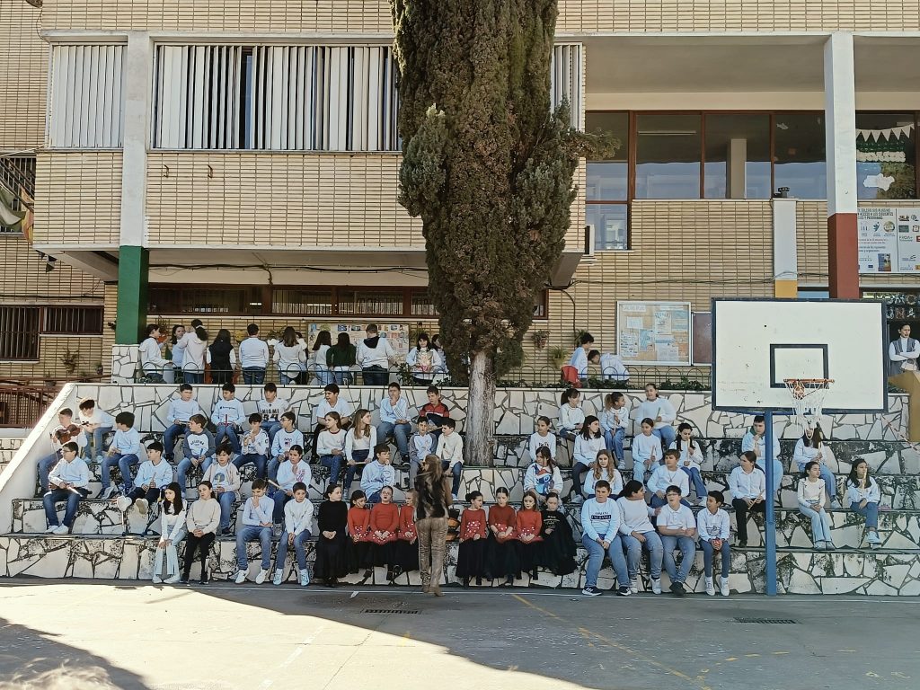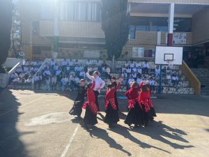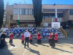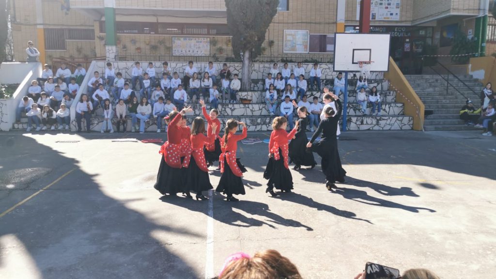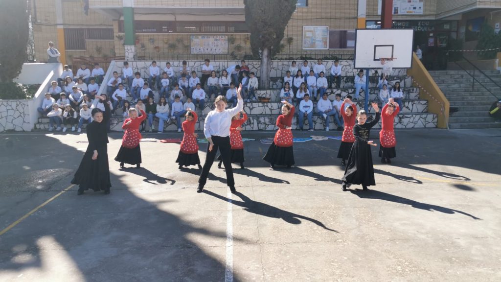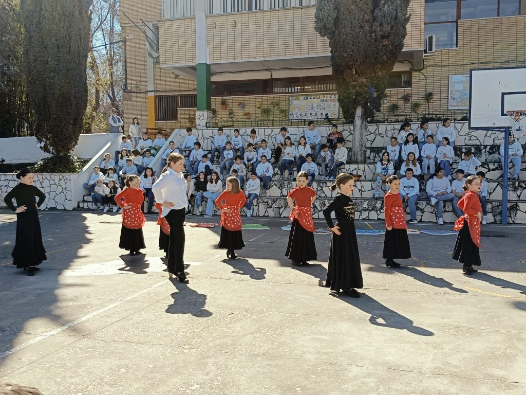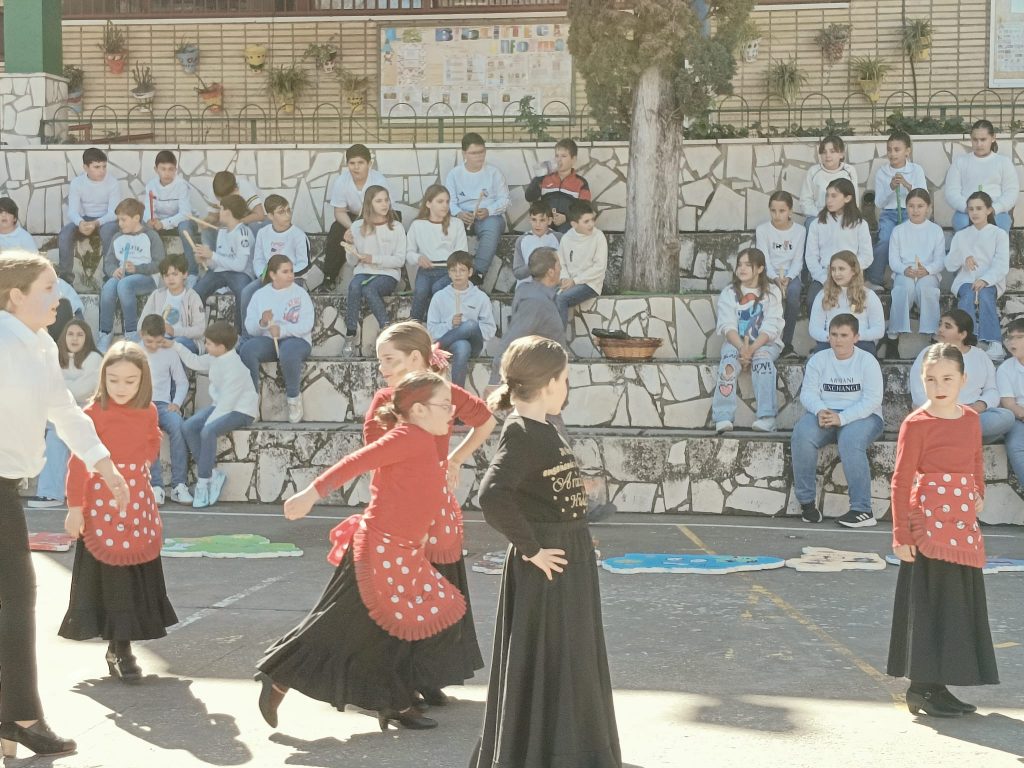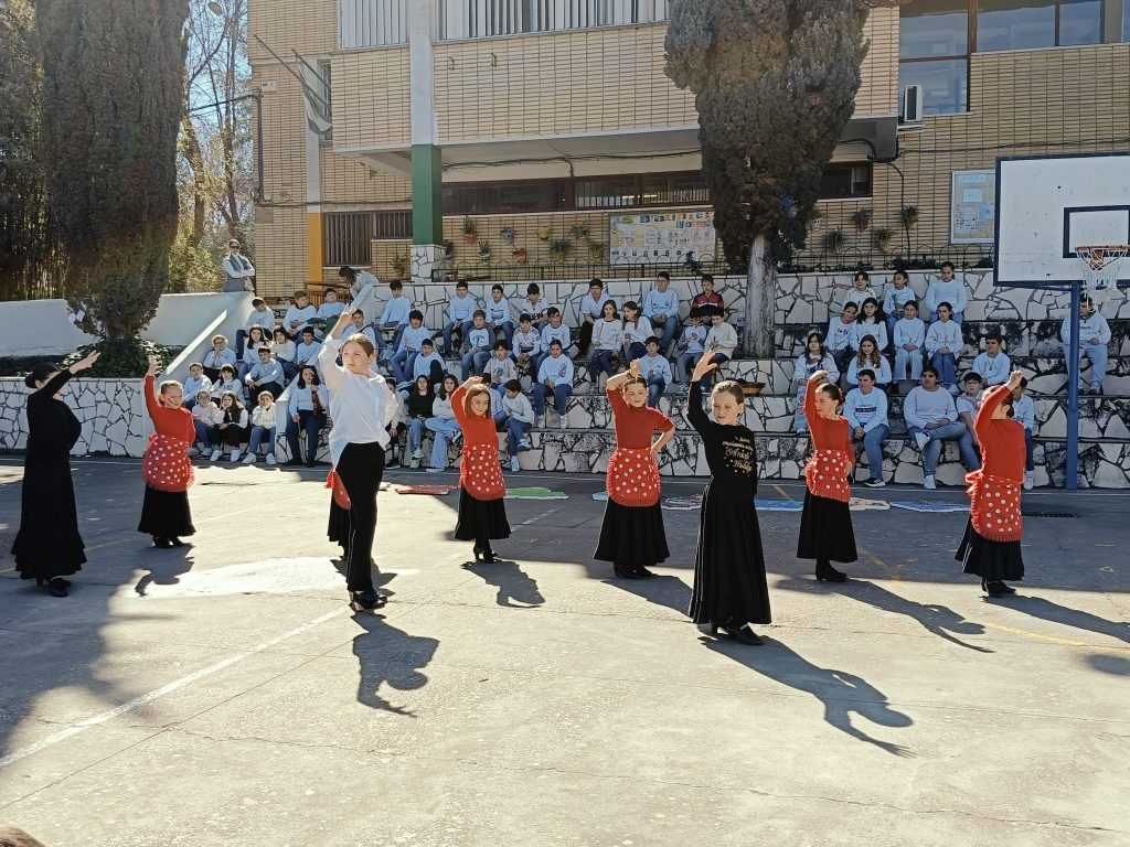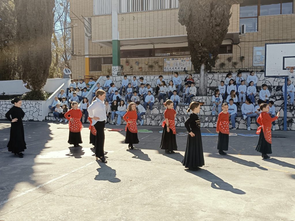 No olvidamos nuestros Símbolos, la música y baile de Andalucía con «Cantares» (en homenaje a las provincias andaluzas) interpretado por 8 alumnas del centro Lidia Ramírez Calvillo (5ºA), Encarnación Hinojosa Algar (4ºB), Elena Guerrero Carvajal (4ºA), Carlota Muñoz García (2ºA), Vega Gómez Maqueda (2ºA), Araceli García Medina (2ºA), Daniella Prieto Loor (2ºA), Carmen Mª López Burgos (5 años A), Daniela Osuna Aranda (5 años B). Dirigido por Araceli Hidalgo