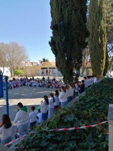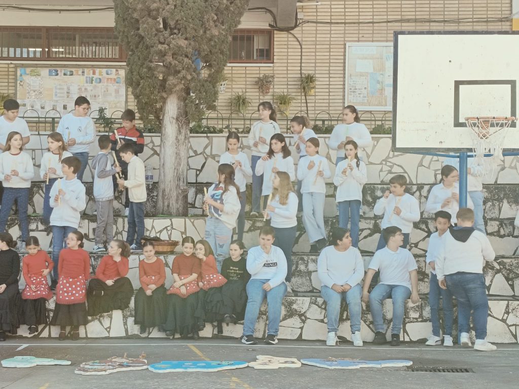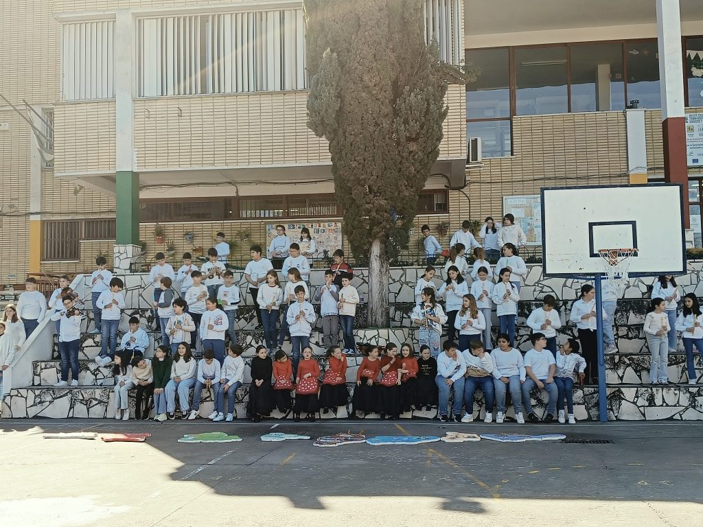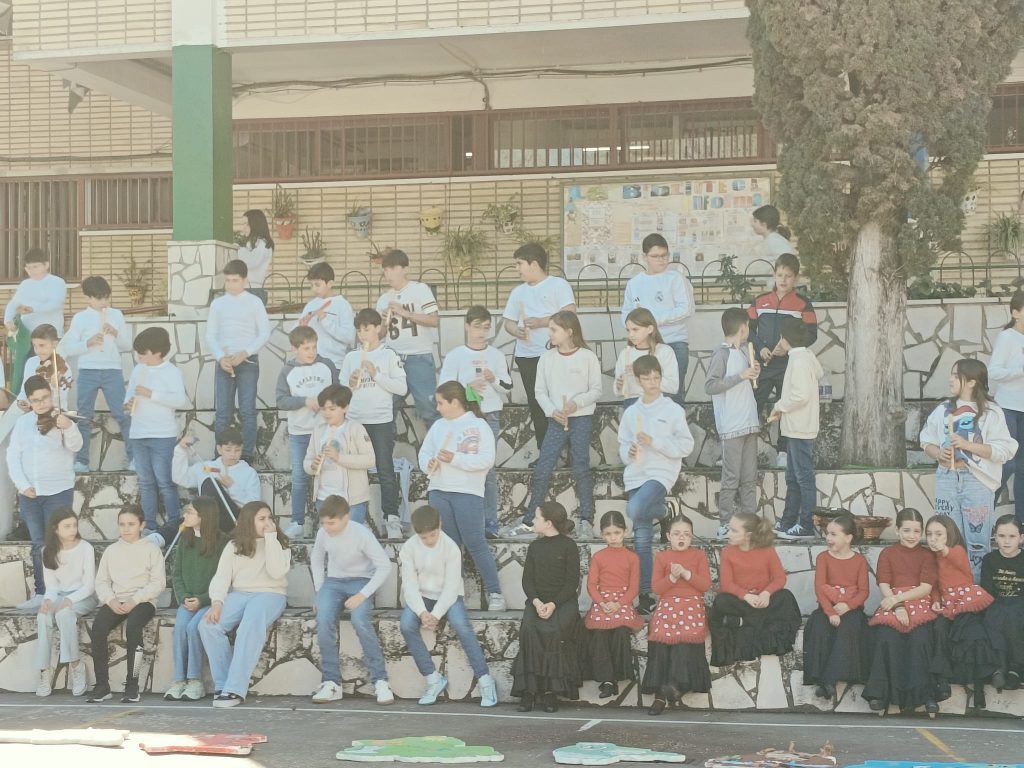 El Himno ha sido interpretado a flauta por el alumnado de 5º de Primaria trabajado en clase por sus maestras de Música. También ha participado dos alumnos de Quinto a violín: Martín Cabello Lucena (5ºA), Juan Arrebola Carnerero (5ºB) y Araceli Torres Lara (6ºB) con el violín.