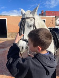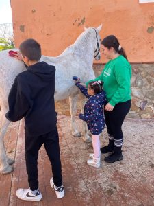 Hoy el alumnado del Aula Específica junto a sus maestras y sus familias han disfrutado de un día magnífico en el centro ecuestre “La Garrocha”. Allí han podido cepillar a los caballos, darles de comer, pasearlos y en definitiva conocer más de cerca el mundo de estos animales. Esta es la primera sesión de hipoterapia, unas de las actividades organizadas este curso dentro del programa más equidad de la Junta de Andalucía.